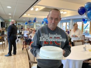 Llys Jasmine 10th birthday 131023 (36) resident with birthday cake
